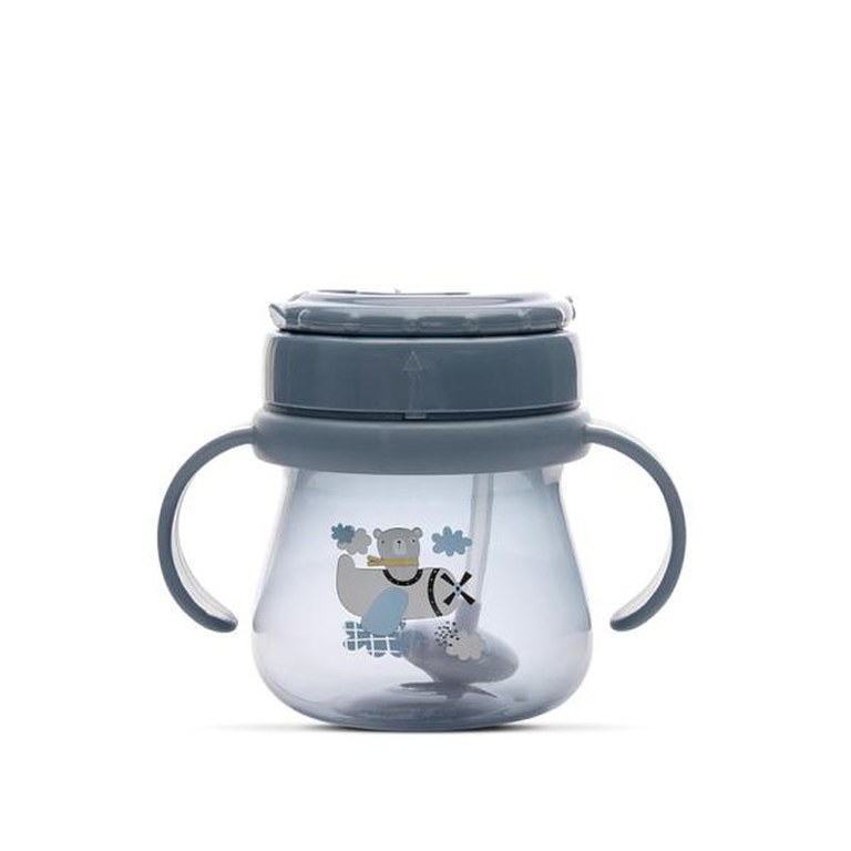 Cana cu toarte, sistem de baut din orice pozitie, cu pai flexibil, 12 luni+, 250 ml, My Friend, Cameo Blue