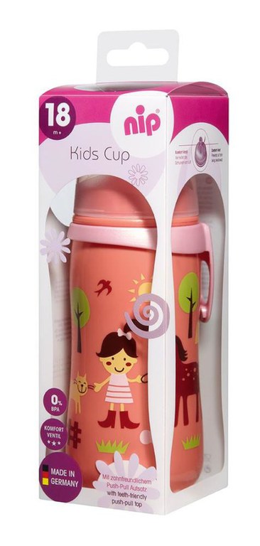Cana de baut antipicurare pentru copii nip Kids Cup Girl din PP 330 ml, cu clip de prindere si adaptor de baut push-pull, ventilat si prietenos cu dantura, de la 18 luni- Adaptor de baut push-pull ant