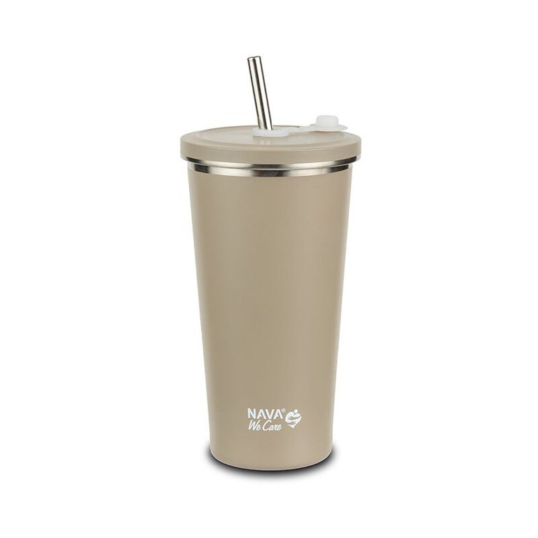 Cana termica cu pai din otel inoxidabil Nava We care Bej 520 ml