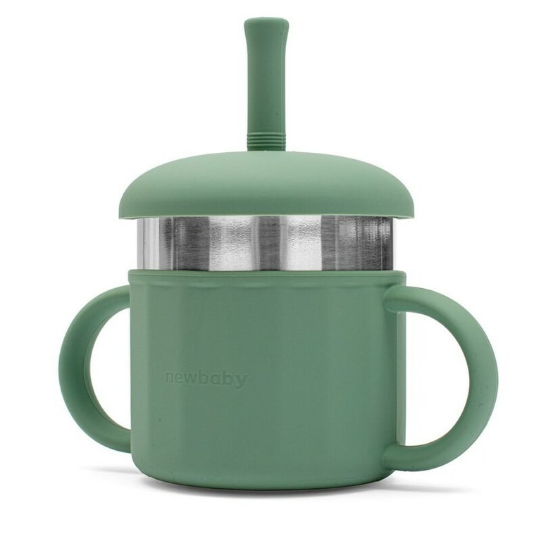 Canuta cu manere si gura de scurgere New Baby 0 luni+ green