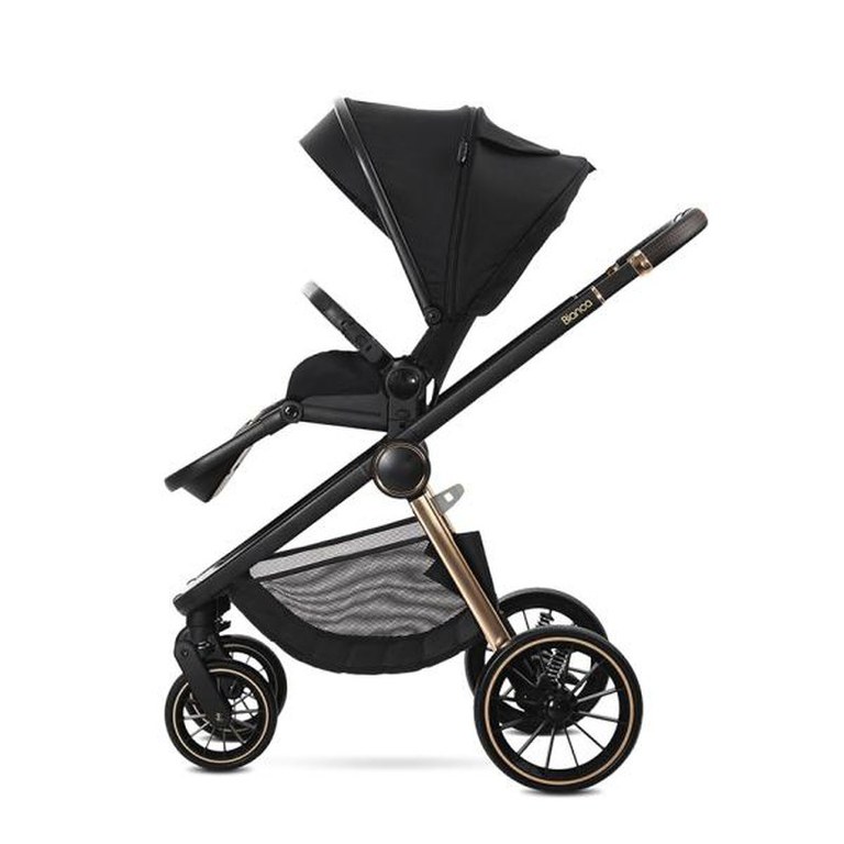 Carucior 2 in 1 pentru copii Lorelli Bianca Black, cadru din aluminiu, suspensii, cos landou individual cu maner de transport, geanta, greutate suportata 22 kg
