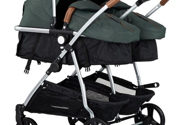 Carucior gemeni Chipolino Duo Smart 3 in 1 basil, Cadru aluminiu, pliere compacta, Suspensii si frana, Spartar reglabil, accesorii incluse