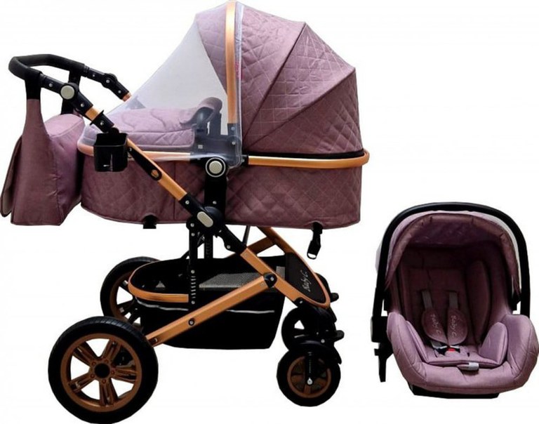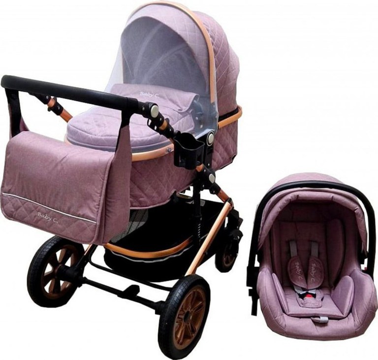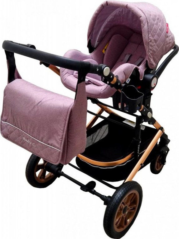 Carucior pentru copii Baby Care Pro 530 Mov deschis 3 in 1 Transformabil, Cadru Aluminiu, Amortizoare, Roti din cauciuc, Spatar reglabil 3 trepte, Plasa insecte, Geanta