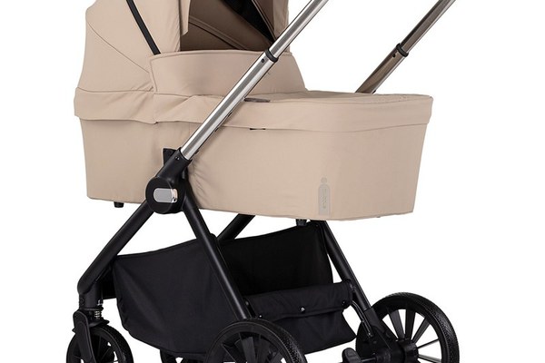 Carucior pentru copii Chipolino Encanto 3 in 1 tiramisu cu spatar reglabil, suspensii, bara detasabila, suport piciare ajustabil, maner reglabil si accesorii