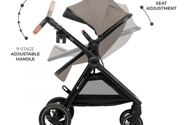 Carucior pentru copii Kinderkraft Esme Pro Sand Beige 3 in 1, reversibil, cu suspensii, geanta, suport pentru pahar si husa pentru ploaie