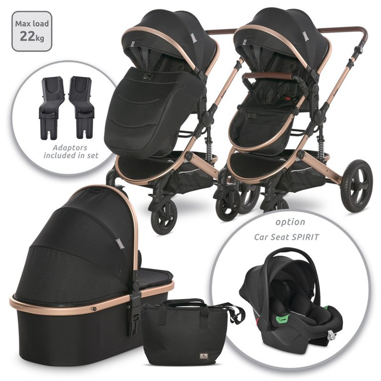 Caruciorul Boston contine landou, parte sport, acoperitoare de picioare pentru vreme rece si plasa de protectie antiinsecte. Optional, se poate achizitiona cosulet auto model Spirit (cod 1007178),
