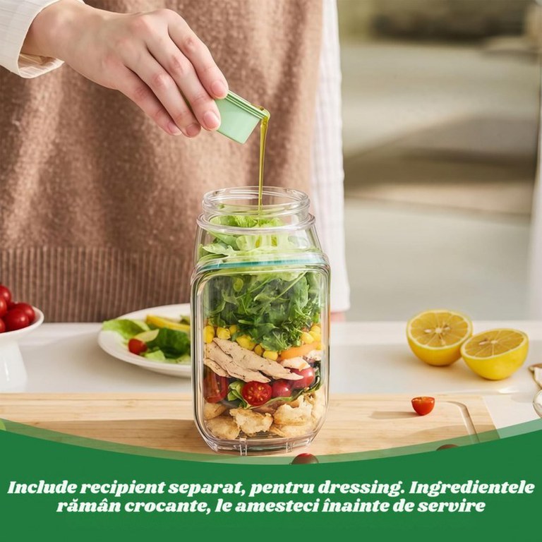 Caserola alimentara, caserola cu capac etans pentru salata, picnic, pranz si mancare.Recipient alimentar, cutie pentru salata la pachet, caserola reutilizabila.Borcan pentru salata cu recipient pentru