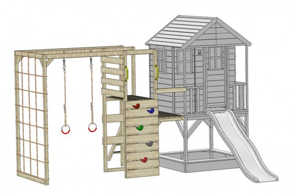 Casuta de gradina lime Lodge cu tobogan, leagan si modul sport Wendi Toys