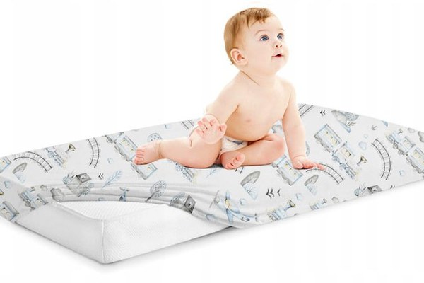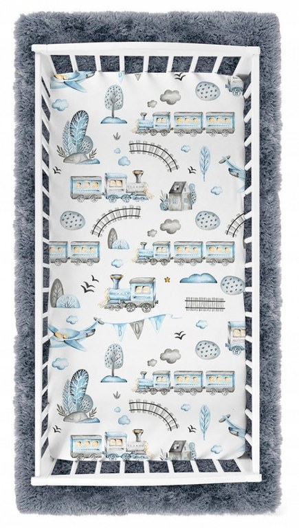 Cearceaf cu banda elastica pentru pat copii dimensiune 140 x 70cm, 100 bumbac, BabyMam retro train