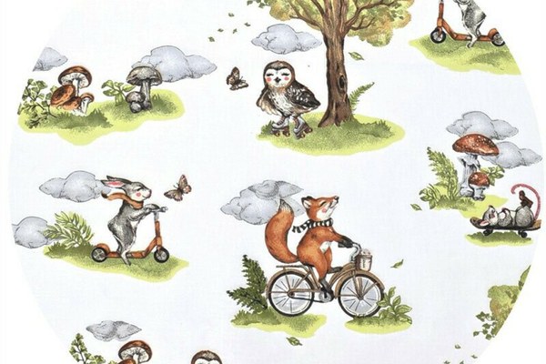 Cearceaf cu elastic Qmini Fox on bikes Natural pentru pat 160x80 cm, din bumbac