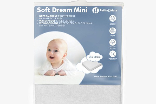 Cearceaf elastic impermeabil PetiteMars pentru patut co-sleeper din bumbac 84x50 cm alb