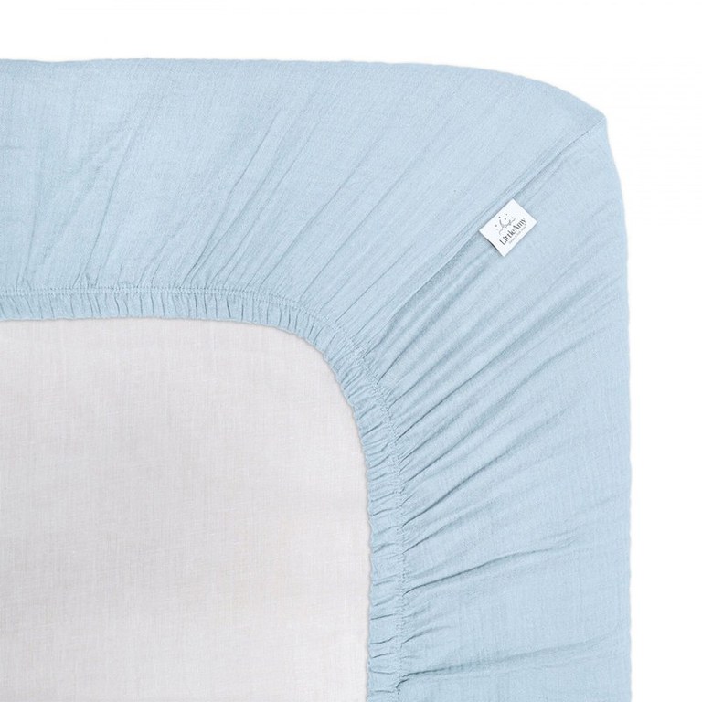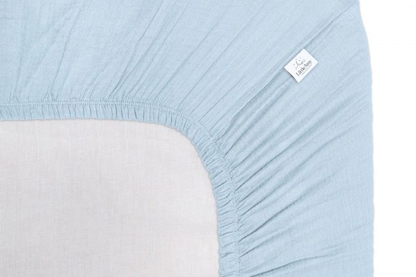 Cearceaf muselina organica, cu elastic, Little Amy, Albastru deschis, 90 x 200 cm