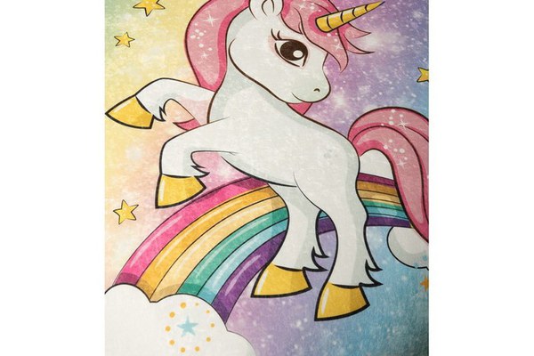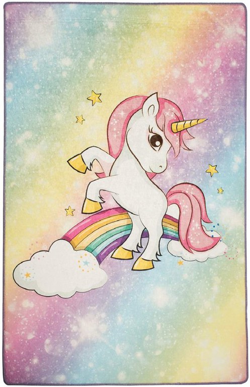 Covor pentru copii, Chilai Home, cu tesatura moale si baza antiderapanta, dimensiune 150 x 200 cm, model Unicorn