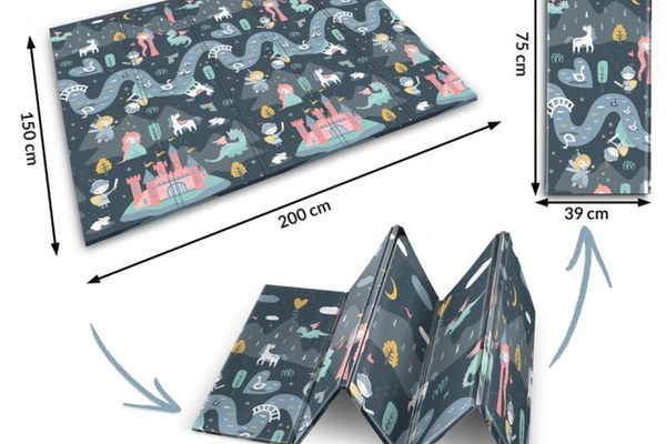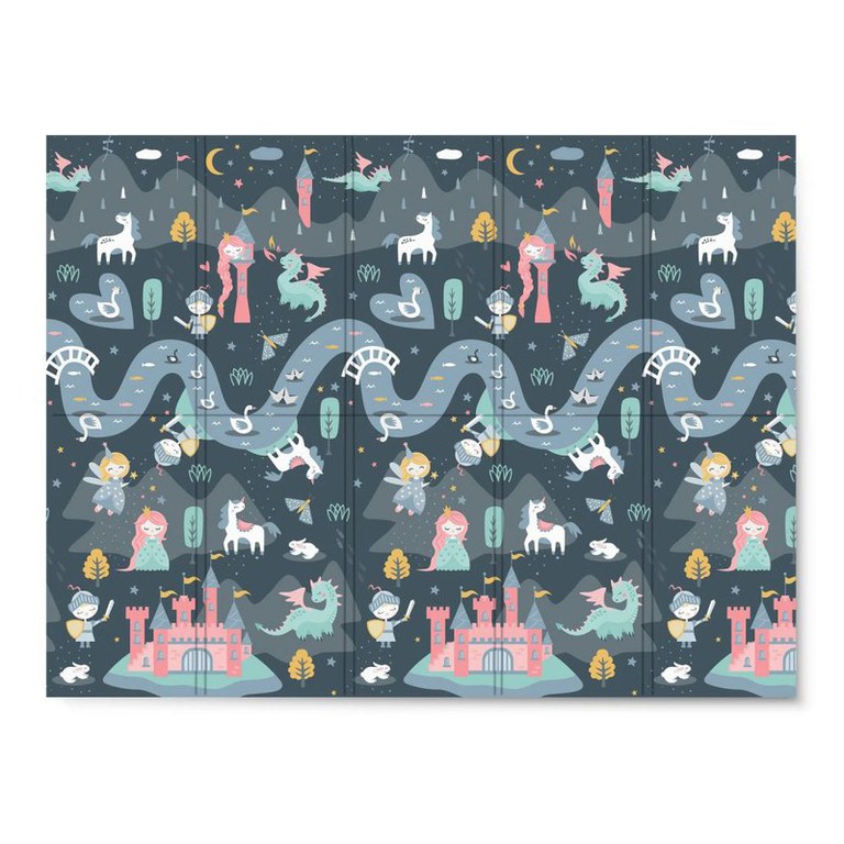 Covoras de joaca pentru copii cu doua fete Nukido Castelul printesei Gri 200x150x1cm,pliabil,realizat din spuma XPE inodora,in cutie de carton ce se poate colora