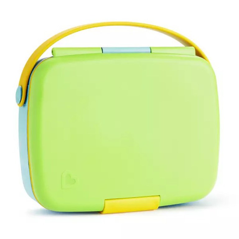 Cutia pentru pranz Bento Munchkin cu tacamuri din otel inoxidabil a fost proiectata pentru a se potrivi portiilor de mancare pentru copii si pentru mainile mici, pentru pranzuri scolare sanatoase. Pac