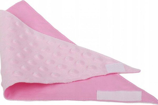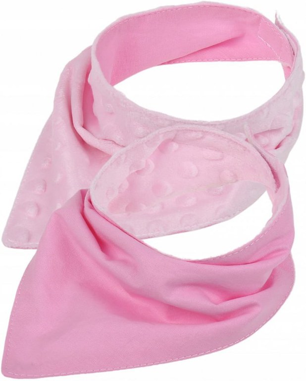 Esarfa moale pentru copii BabyMam, forma triunghiulara, sistem de prindere reglabil cu velcro moale, design 2-in-1 cu o fata din bumbac si una din minky pink