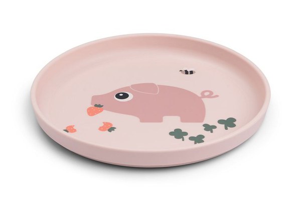 Farfurie Foodie Done by Deer Tiny Farm Powder aduce echilibru intre functionalitate si design jucaus.nbspCu nuanta powder si motivul Pigee, Farfurie Foodie Done by Deer Tiny Farm Powder ii incurajeaza