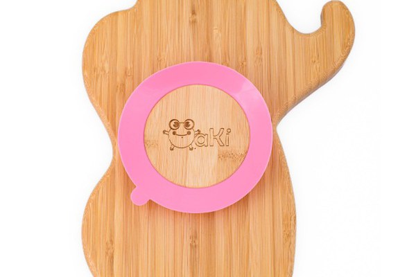 Farfurie elefant din bambus organic cu baza tip ventuza Oaki roz