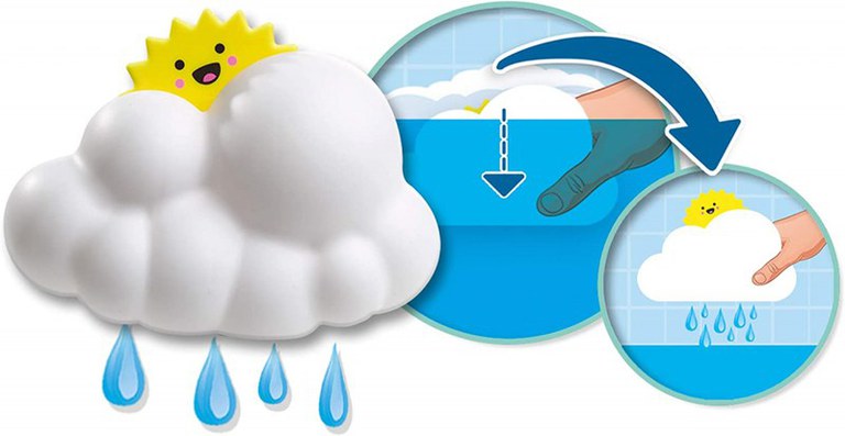 Cu aceasta jucarie de baie distractiva poti avea timp de joaca nesfarsit.Umpleti norul cu apa si faceti sa ploua. Ce se intampla cand norul este gol Soarele iese Pentru ca dupa ploaie vine soarele Con