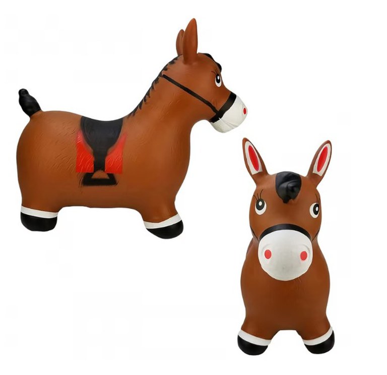 Jucarie gonflabila pentru copii Malplay Brown Horse, din cauciuc rezistent cu pompa inclusa, dimensiune 55 x 48 x 27 cm