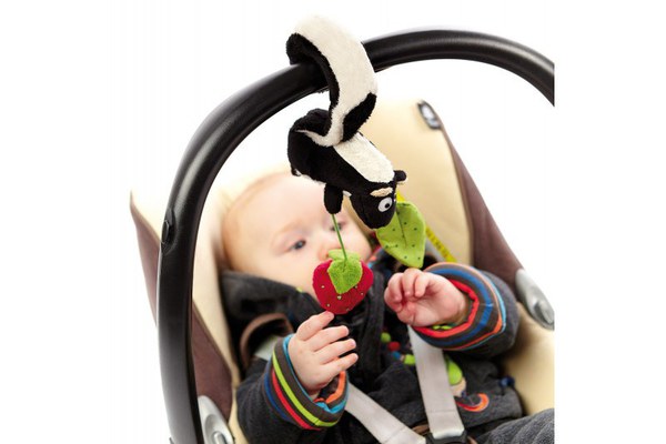 Jucarie suspendabila sconcs ndash pentru scoica bebelusuluiJoaca si distractie in miscare Acest sconcs haios se prinde usor de manerul scoicii auto cu ajutorul coditei sale inelate si priveste cu drag