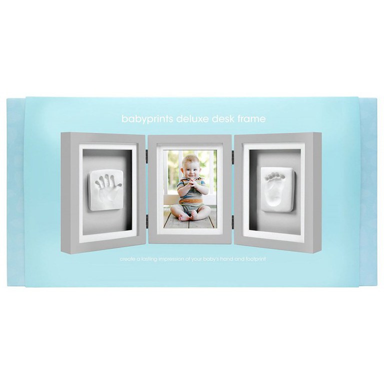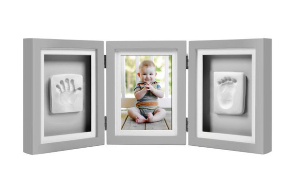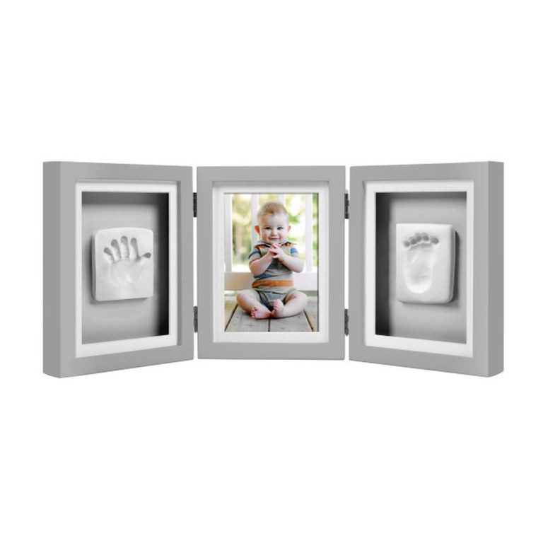 Kit rama foto tripla gri cu amprente manuta si piciorus Pearhead