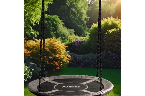 Leagan tip cuib pentru copii Neo-Sport Gri XXL, 100 cm, material impermeabil, cadru din otel, greutate suportata 150 kg