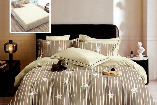 Lenjerie de pat din finet cu 6 piese, cearceaf pat cu elastic, cearceaf pilota 200 x 230 cm, 2 fete perna 50 x 70 cm si 2 fete perna 70 x 70 cm