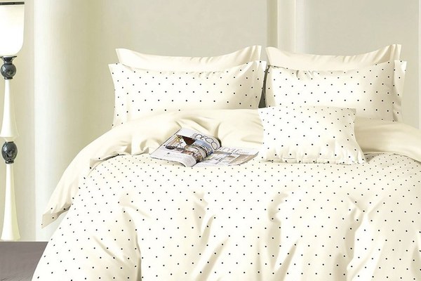 Lenjerie de pat Somnart Percale cu 4 piese, cearceaf pat clasic 240 x 260 cm, cearceaf pilota 200 x 230 cm si 2 fete perna 50 x 70 cm model cu buline