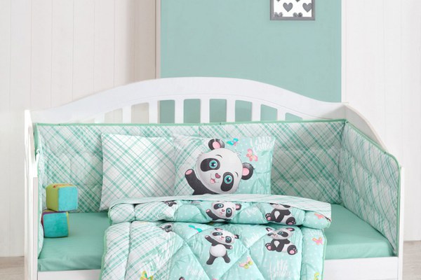 Lenjerie patut cu 6 piese Baby Ranforce Panda Mint