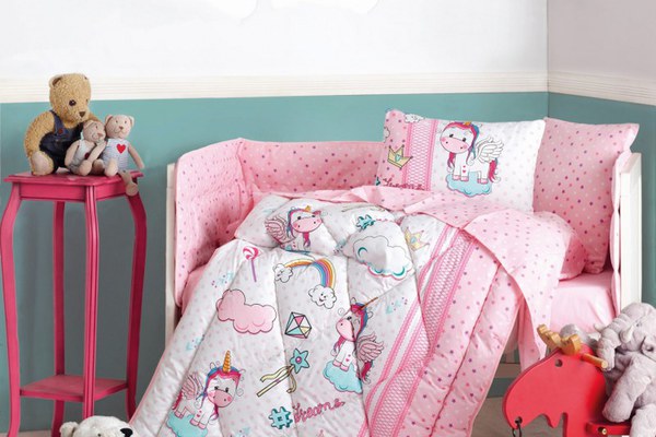 Lenjerie patut cu 6 piese Baby Ranforce Unicorn Pink