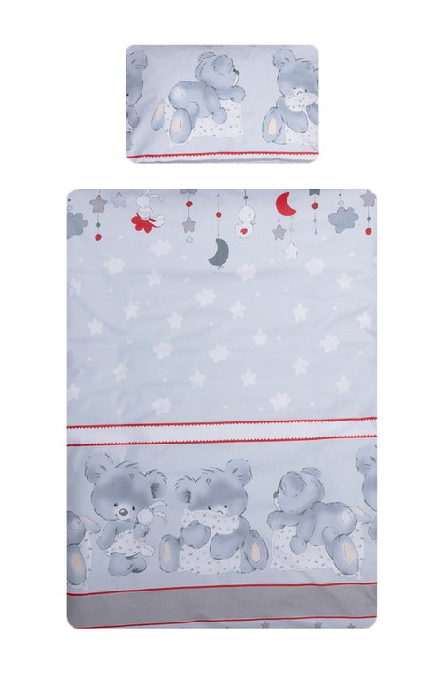 Lenjerie patut cu 7 piese 120x60 cm Ursuleti iepurasi gri
