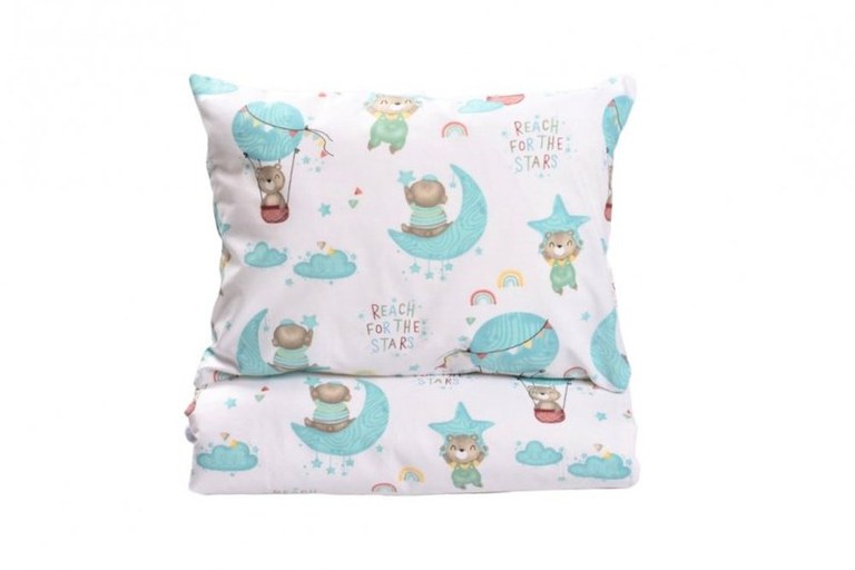 Lenjerie patut gradinita 3 piese patut stivuibil din bumbac model ursuleti in balon