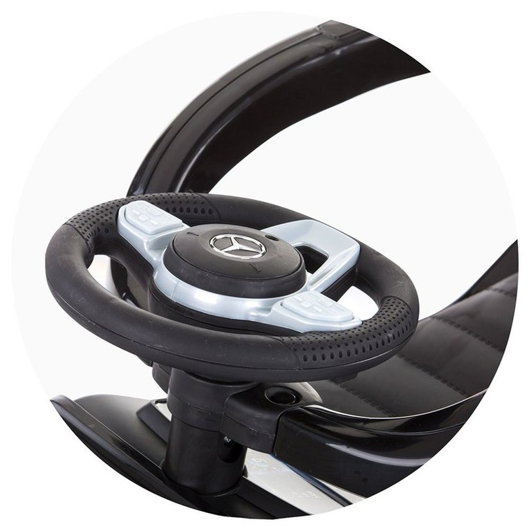 Masinuta copii de impins Chipolino Mercedes G350 Black cu maner si copertina detasabile, spatiu de depozitare sub sezut, suport pentru picioare retractabil, potrivita copiilor cu varsta mai mare de 1 an cu greutatea pana la 25 kg