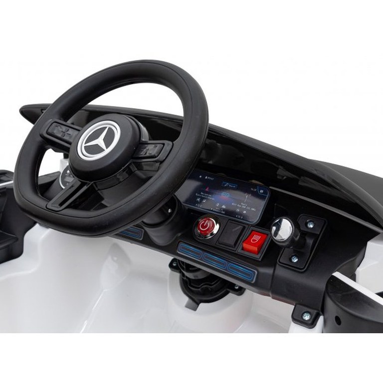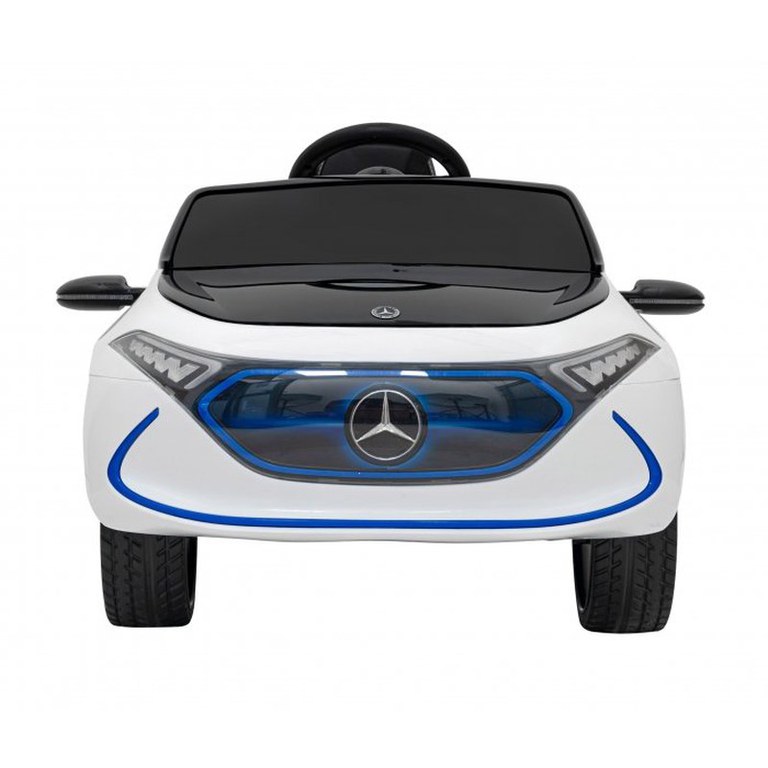 Masinuta electrica pentru copii Mercedes Benz AMG EQA alb 70W cu telecomanda, sunete, suspensii, lumini, scaun piele si roti din spuma Eva