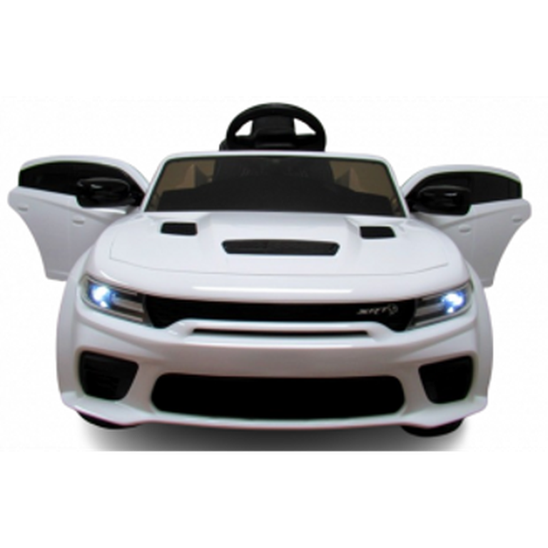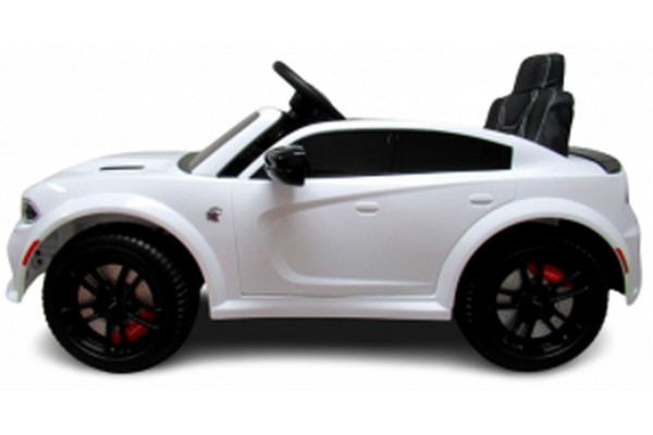 Masinuta electrica pentru copii SRT R-Sport Dodge 1-5 ani alb 90W cu telecomanda, roti EVA, pornire lenta, scaun piele, Mp3 si Usb, 107x68x53 cm