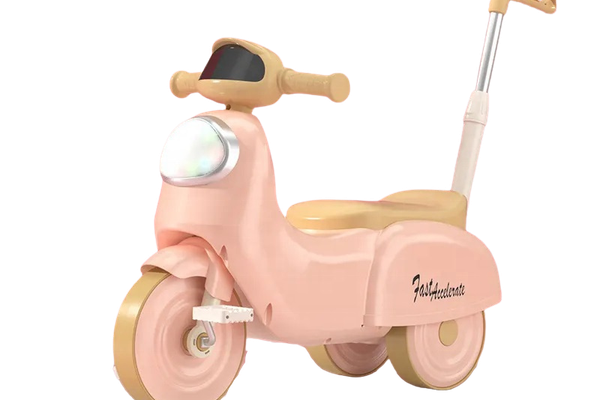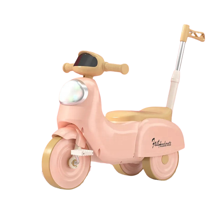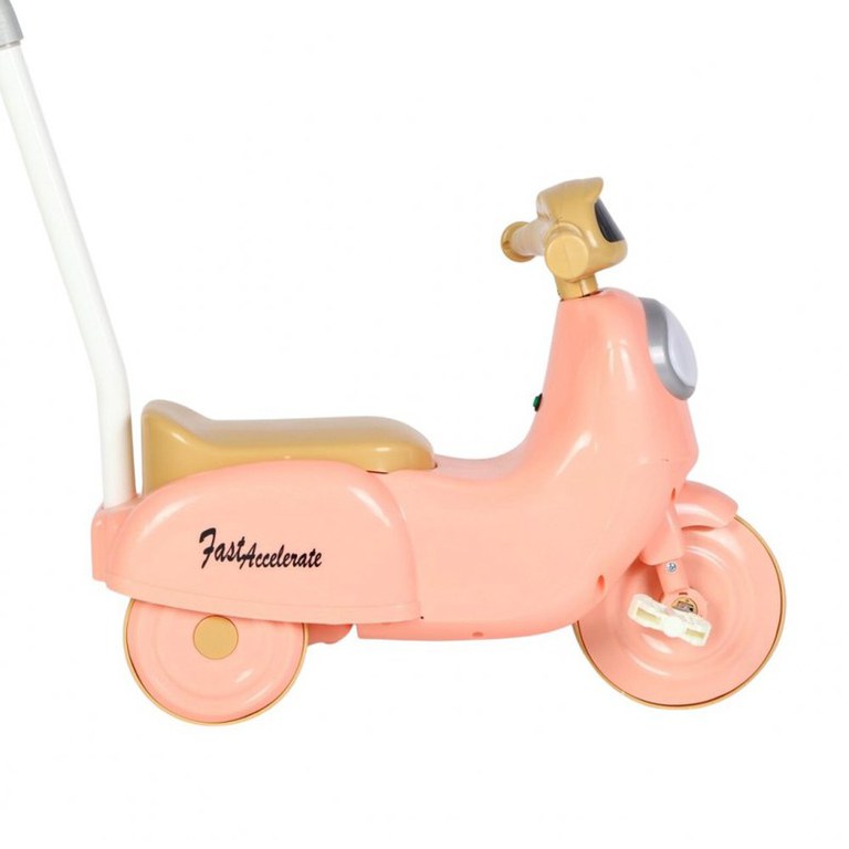 Motocicleta cu pedale pentru copii Nichiduta 3in1 Fast Pink cu maner parental detasabil,far cu lumina LED,muzica,spatiu de depozitare,structura stabila,sistem antirasturnare,roti rezistente,unghi de viraj limitat