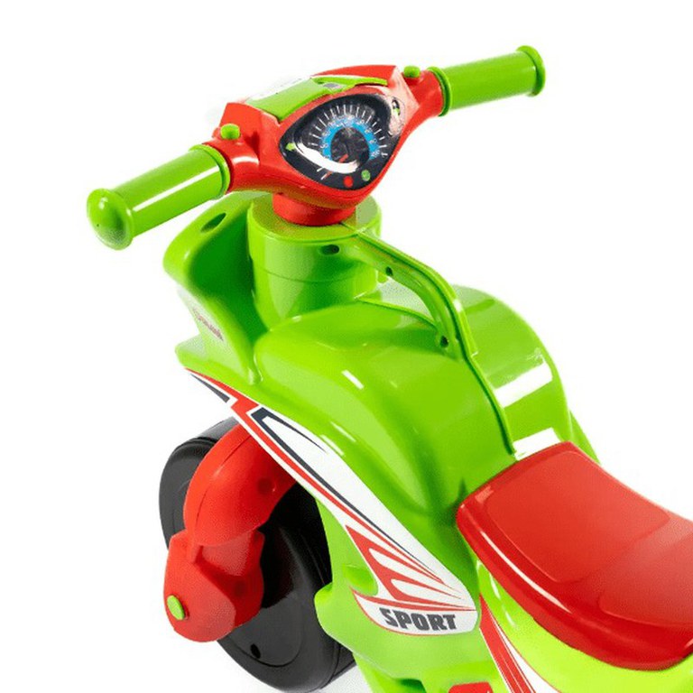 Motocicleta pentru copii fara pedale Racing 01395 VerdeRosu prevazuta cu butoane pentru efecte sonore, ghidon inalt, Inaltimea scaunului 29 cm