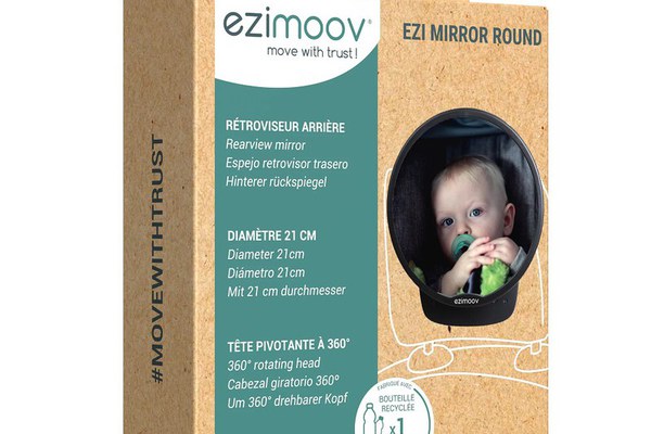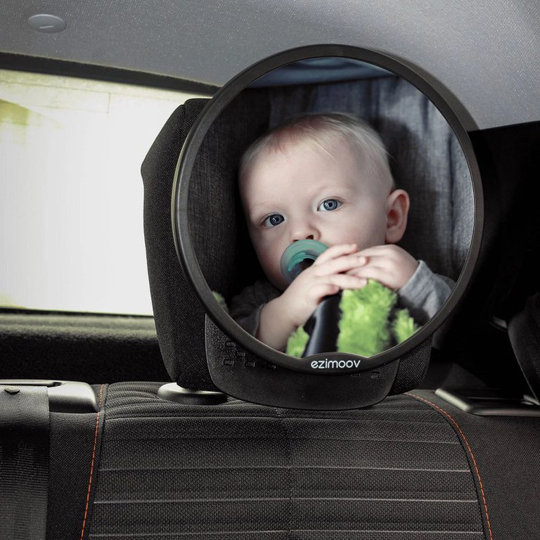 Oglinda retrovizoare Ezimoov Round este o oglinda auto mare, usor curbata, poate fi atasata pe tetiera banchetei din spate a masinii si este ideala pentru scaunele auto orientate spre spate.Oglinda Ez