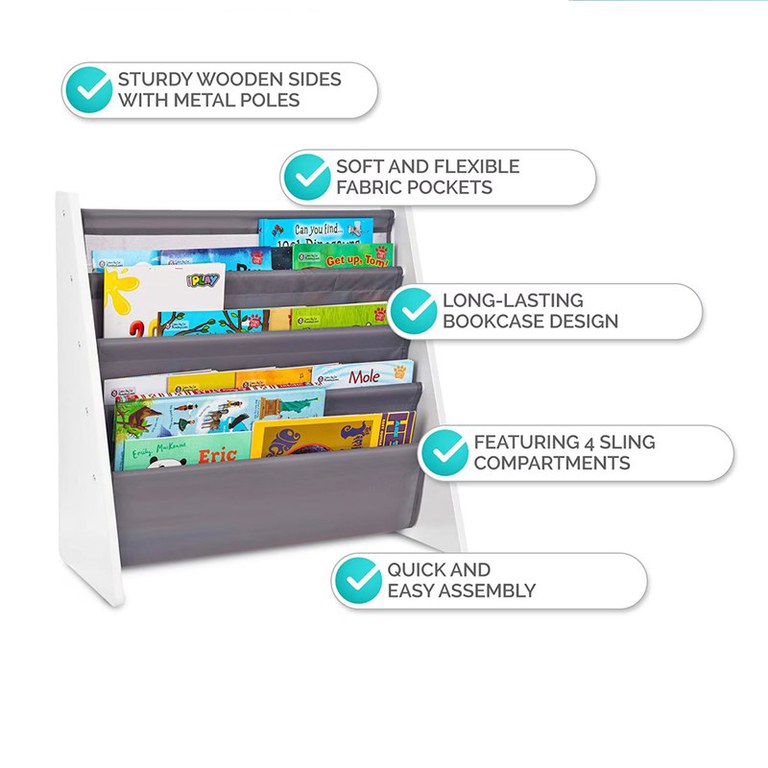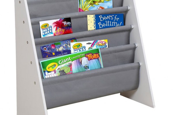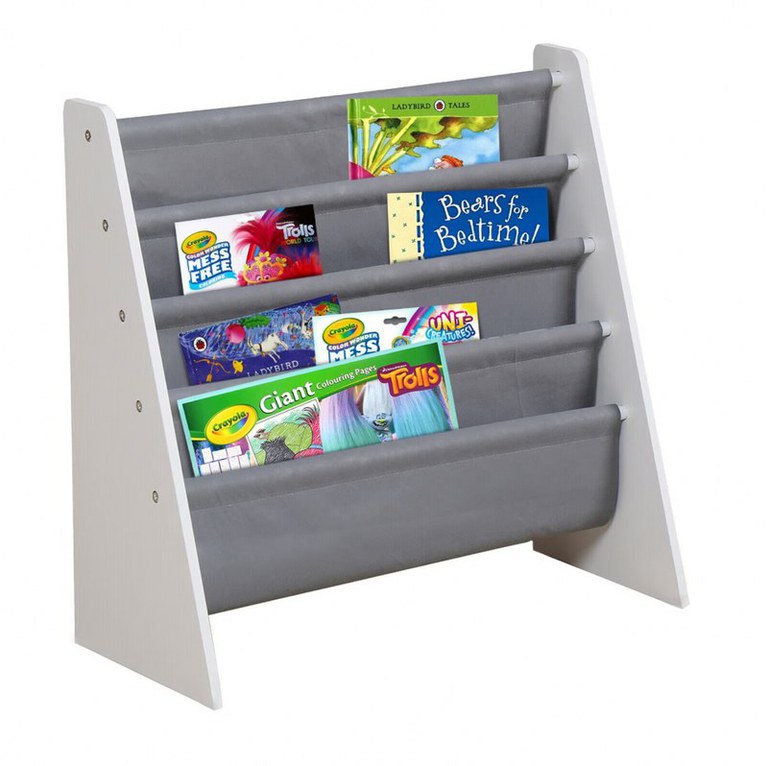 Organizator copii Ginger Home WhiteGrey cu rafturi pentru carti si reviste,material MDFtextil,potrivit pentru camera de zi, birou, centre pentru copii si gradinite ,dimensiune 62,7x28x60cm