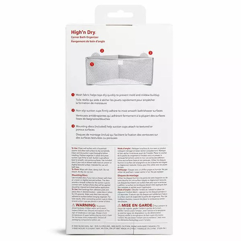Munchkin HighrsquoN Dry ofera o solutie usoara de depozitare pentru colectia in crestere a micutului tau de jucarii de baie, squirters, creioane si multe altele. Partea frontala a plasei va permite sa