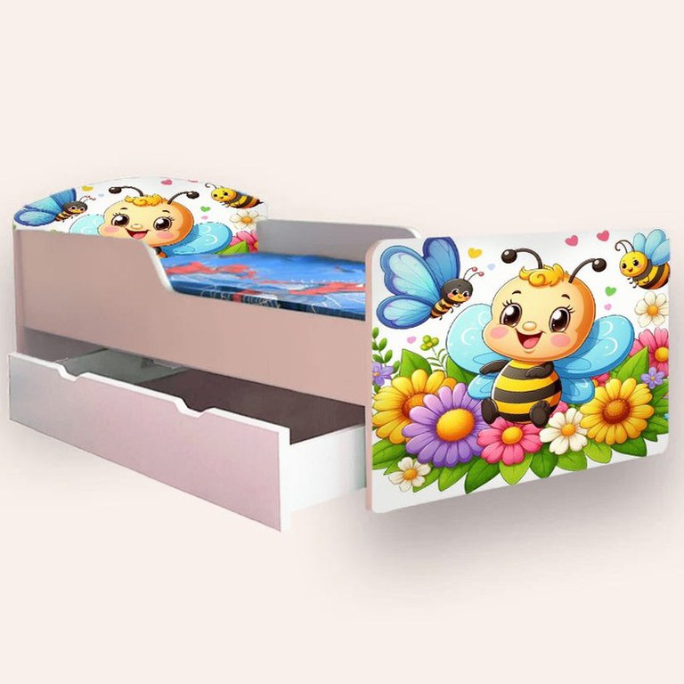 Pat pentru copii Albinuta, cu sertar si saltea, 2-8 ani, 140x70 cm