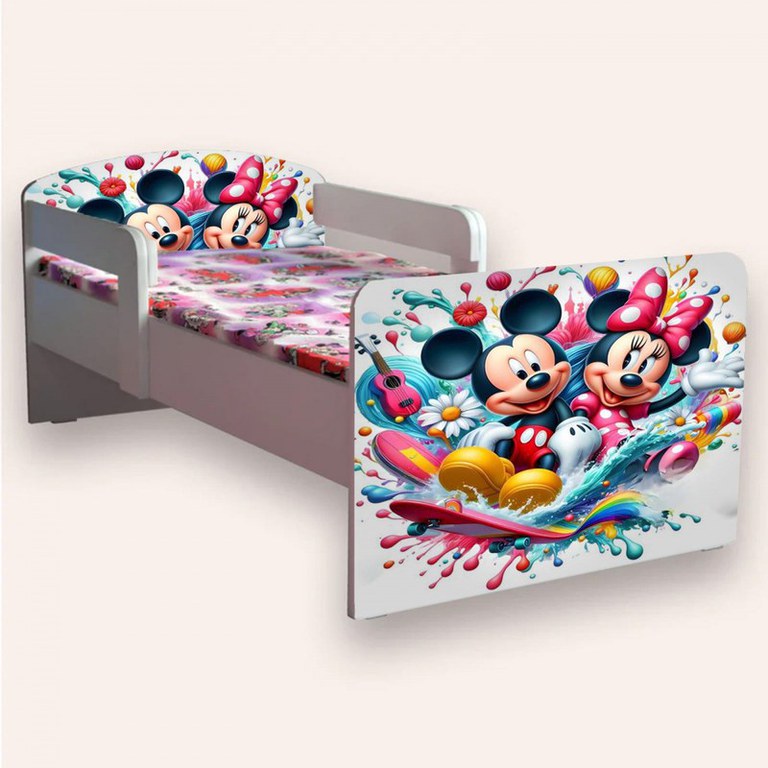 Pat pentru copii Mickey si Minnie, cu manere, 2-8 ani, 140x70 cm