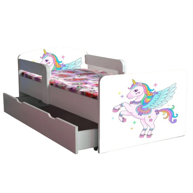 Pat pentru copii Unicorn, cu sertar, 2-6 ani, 130x60 cm