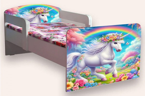 Pat pentru copii Unicorn varianta 2, cu manere si saltea, 2-12 ani, 160x80 cm