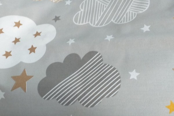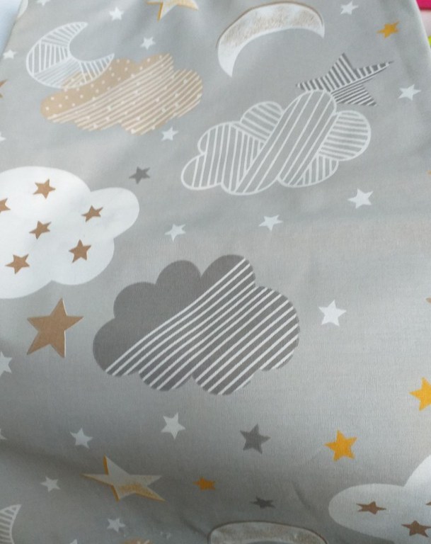 Perfecta pentru zilele calduroase, paturica este din bumbac 100, cu o parte din panza de bumbac fina cu imprimeuri vesele si o parte din bumbac tricot moale, alb.Dimensiune 98x78 cmSe poate spala in