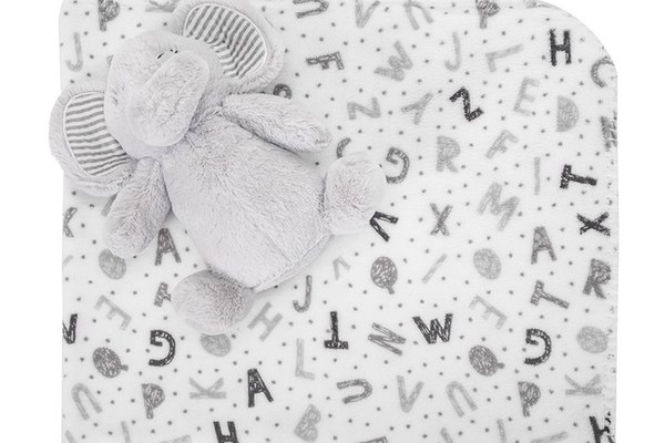 Paturica moale cu jucarie din plus Nappy Elefant Grey 90 x 75 cm 0 luni+