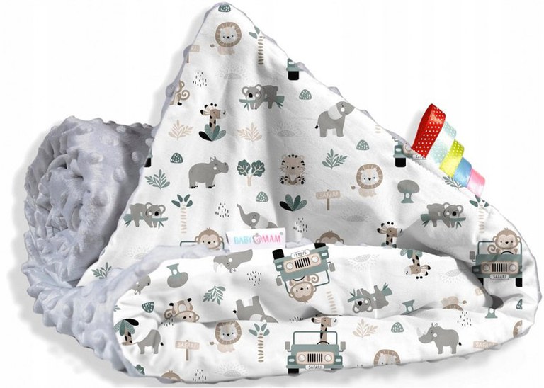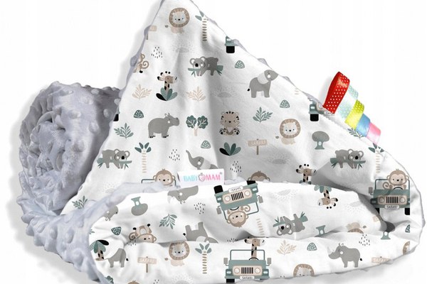 Paturica pentru copii BabyMam versatila, realizata cu doua fete, dimensiune 75 x 100 cm, model minky Safari