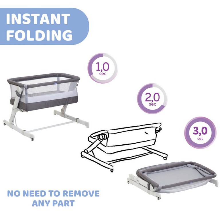 Chicco Next2Me Pop Up ofera confort pentru bebelusi si parinti deopotriva.Cand patutul se afla in pozitia quotatasat de patul parintilorquot, bariera protectoare detasabila permite acces usor la bebel