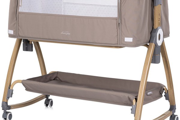 Patut co-sleeper Chipolino Charisma Latte Wood cu laterala culisanta si functie de leagan